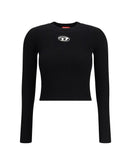 The ribbed viscose Top with Oval D by Diesel is crafted from a soft ribbed knit made of a mixed yarn that includes viscose from responsibly managed forests. The design features a slim fit that flatters the silhouette, with a round neckline and long sleeves. The metal Oval D plaque inlaid on the chest adds a distinctive and contemporary touch to the minimal design, making it perfect for a refined yet understated look.