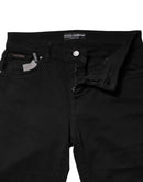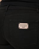 Dolce & Gabbana Black Cotton Logo Mid Waist Skinny Denim Jeans