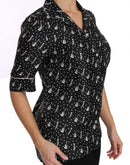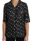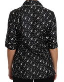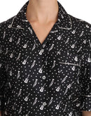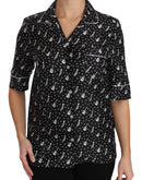 Dolce & Gabbana Black GuitarTrumpet Print Silk Shirt Top