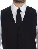 Dolce & Gabbana Black Wool Silk Dress Gilet Jacket Vest