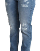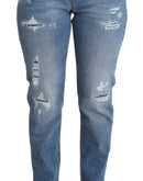 Dolce & Gabbana Blue Tattered Skinny Denim Cotton Blend Jeans