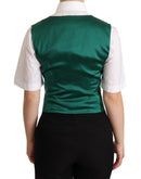 Dolce & Gabbana Green Silk Satin Sleeveless Waistcoat Vest