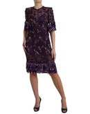 Dolce & Gabbana Purple floral lace crystal embedded dress