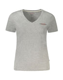 Unleash your fashion-forward spirit with the Guess Jeans V-neck tee—a blend of comfort and chic like no other! Flaunting a bold print and the iconic Guess logo, it’s crafted from a sumptuous mix of organic cotton and a hint of spandex for that perfect fit. This gray masterpiece embodies trendsetting style and effortless ease, making it an essential addition to your wardrobe. Dare to stand out and let this Guess Jeans tee define your next bold statement!