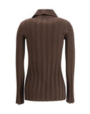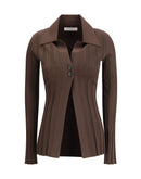 The glossy viscose Cardigan by Max Mara Sportmax blends softness with a bold attitude, featuring a silhouette that gently flares toward the hem. The shirt collar frames the neckline, while two horn-effect buttons close at the bust, leaving the lower part open for a modern, feminine look. The irregular rib-knit texture adds depth to the design, and the regular fit ensures effortless comfort and elegance.