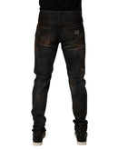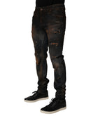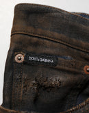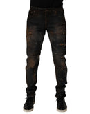Dolce & Gabbana Black Cotton Skinny Tattered Men Denim Jeans