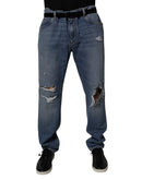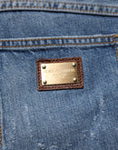 Dolce & Gabbana Blue Tattered Cotton Straight Denim Jeans