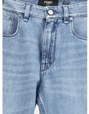 Fendi Light Blue Cotton Straight-Leg Jeans