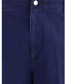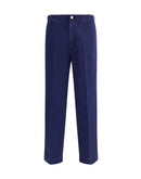 Gucci’s chino Jeans blend casual denim style with tailoring-inspired details. They feature a button closure, belt loops, two inset pockets on the hip and two patch pockets on the back. The embroidered logo on the back pocket adds a distinctive touch, while the straight hem completes the design with a clean, versatile silhouette.
