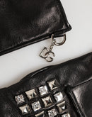 Dolce & Gabbana Black Leather Studded Fingerless Hand Mitten Men Gloves