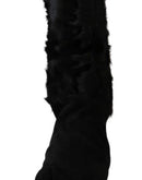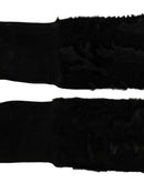 Dolce & Gabbana Black Elbow Length Mitten Suede Fur Gloves