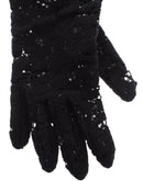 Dolce & Gabbana Black Lace Wool Lambskin Fur Elbow Gloves