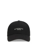 The Logo Baseball Hat by Givenchy is a sporty, sophisticated accessory made of cotton twill for comfort and coolness. The curved brim protects from the sun in style, while the GIVENCHY Paris signature embroidered on the front adds a distinctive touch. The tongue with GIVENCHY engraved metal buckle on the back completes the design with an elegant and functional detail. A cap that combines practicality and luxury for a casual-chic look.