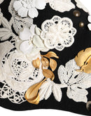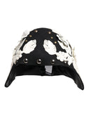 Dolce & Gabbana Black Wool White Floral Gold Leaf Cloche Hat