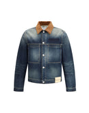 Alexander McQueen’s Denim Jacket features a corduroy collar and a front button closure. Two patch pockets stand out on the front, while a logo patch completes the design, adding a distinctive and recognizable touch to the garment.