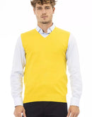 Unleash the daring elegance of Alpha Studio with this vibrant yellow vest, perfect for the modern man who isn’t afraid to make a bold statement. With its V-neckline and fine rib knit collar, this piece captures effortless sophistication. Expertly crafted in Italy, it showcases a regular fit, designed to envelop you in exceptional comfort without compromising on style. Made from a sumptuous blend of viscose and nylon, it’s a wardrobe essential that combines easygoing luxe with a burst of sunshine.