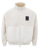 Bomber jacket in Armani Exchange Double Face technical fabric. Two white/beige colours, central zip fastening and side pockets, gathers at the waist, high collar. Contrasting logo patch. Composition: 100% Polyester-Sku inside:24FEB86