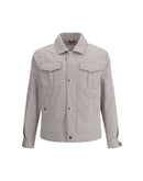 Brunello Cucinelli’s Waterproof Jacket is a stylish and functional garment with a shirt style that combines style and practicality. The classic collar lends a sophisticated touch, while the front zipper and snap-button flap closure offers additional protection against the elements. The two side welt pockets and two slit pockets with patch flap on the front add functionality without compromising aesthetics. Adjustable button cuffs provide a customized fit.