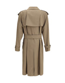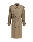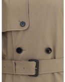 Burberry’s long cotton gabardine Trench Coat combines tradition and modernity in an iconic garment. Raglan sleeves soften the shoulders, while buttoned welt pockets recall archival designs. Featuring a relaxed fit, it features a double-breasted button closure, hook-and-eye collar, chin strap and epaulettes. A belt with a B-shaped buckle allows you to define the silhouette, while strappy cuffs and a buttoned back slit add functional details. Lining and undercollar in iconic Burberry Check complete the design.