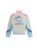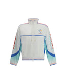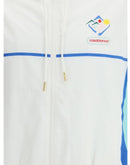 Casablanca’s waterproof Windbreaker Jacket designed to combine functionality and style. Made of technical fabric, it features a high collar, double-slider front zipper closure and two side zipper pockets. Elasticized cuffs and hem ensure a comfortable and protective fit. The iconic contrast monogram is printed on the front and back for a distinctive, modern look. Perfect for tackling rainy days with sporty elegance.