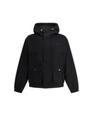 Daily Paper’s cotton Jacket is a versatile and functional garment, featuring an adjustable drawstring hood and a high collar for added protection. The front closure is zippered, covered by a flap with magnetic buttons. Elasticized cuffs and an adjustable drawstring hem ensure a perfect fit. It features two zippered welt pockets on the side and two flap patch pockets on the front. The iconic tone-on-tone monogram on the front adds a distinctive touch.