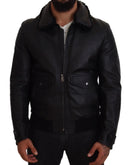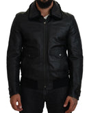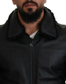 Dolce & Gabbana Black Lamb Leather Collared Men Coat Jacket