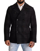Dolce & Gabbana Black Trench Coat Check Wool Jacket