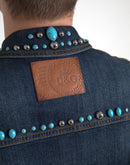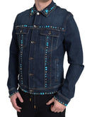 Dolce & Gabbana Blue Denim Turquoise Stones Studded Jacket