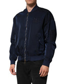 Dolce & Gabbana Blue Nylon DG Embroidery Men Bomber Jacket