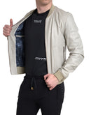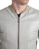 Dolce & Gabbana Cream Leather Bomber Blouson Full Zip Jacket