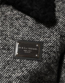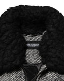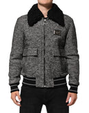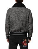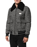 Dolce & Gabbana Gray Wool Herringbone Shearling Collar Bomber Jacket