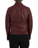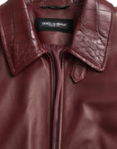 Dolce & Gabbana Maroon Exotic Leather Zip Biker Coat Jacket
