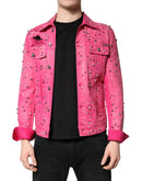 Dolce & Gabbana Pink Crystal Embellished Cotton Denim Jacket