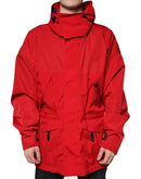 Dolce & Gabbana Red Nylon Hooded Men Full Zip Parka Jacket