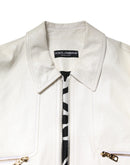 Dolce & Gabbana White Collared Full Zip Biker Coat Jacket