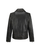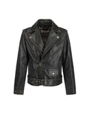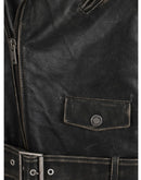 Leather Golden Biker Jacket by Golden Goose, worn vintage effect design, double-breasted front zipper closure, large classic lapels, two vertical welt pockets with zipper for closure, leather waistband adjustable by metal buckle, welt pocket on front, front flap pocket closable by magnetic button, sleeves adjustable by zipper, regular fit.