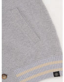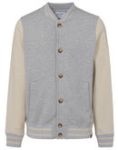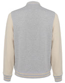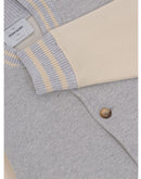 Gran Sasso College Jacket with Buttons. Made of gray-colored fleece, contrasting white sleeves, two-tone details on collar, cuffs and bottom, two side welt pockets.