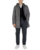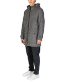 The HAMAKI-HO GBI1577H men’s coat is the perfect choice for those seeking both style and practicality during the cold season. Made of 100% polyester, this coat ensures thermal insulation and weather resistance, providing maximum comfort even on the coldest days. The modern design features a clean line with an adjustable hood, front zip closure, and practical patch pockets with flap and button, ideal for storing small items or warming your hands. Adjustable buttoned cuffs add a functional touch and allow for a customized fit. A versatile coat that complements both casual and refined looks, perfect for the dynamic man who values elegance.