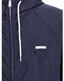Prada’s Re-Nylon Jacket is a functional and refined garment designed for modern, sustainable elegance. Featuring an adjustable hood with drawstring and front closure with a double-slider zipper, it has two side welt pockets and a hem that is also adjustable. On the front, the classic triangular patch with logoed label, the distinctive symbol of the Maison, stands out.
