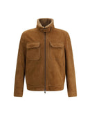 Salvatore Santoro’s shearling Jacket is a luxurious outerwear piece designed for rugged, refined elegance. Made of fine sheepskin, it features a high collar and a front closure with a double-slider zipper and snaps for optimal protection. The design is completed with two flap patch pockets and two welt pockets, while the soft shearling interior provides warmth and comfort. An iconic and timeless garment, perfect for facing winter in style.