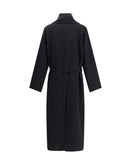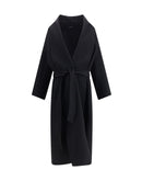 The Coat embodies the relaxed elegance of Tom Ford through a fluid and sophisticated construction. The double wool and cashmere fabric gently drapes the body, while the belt at the waist defines the silhouette with effortless balance. The shawl collar and soft shoulder line convey a refined yet laid-back attitude, enhanced by welt pockets and a back vent. A piece that celebrates essential luxury through perfect proportions and impeccable tailoring details.