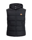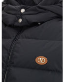 Valentino’s Down Vest features a padded and quilted design designed to combine comfort and style. Featuring a removable hood and front zipper closure, it is enriched with a leather logo patch applied on the front, which gives a distinctive and elegant touch to the garment.