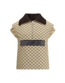The Gucci bomber Gilet combines functionality with contemporary character in an essential piece. Sleeveless in design, it features a half zip closure and a single front pocket accented with a leather Gucci logo. Adjustable drawstrings frame the arm openings, adding a dynamic and customizable touch. A detachable ribbed wool collar completes the look, offering versatility and refinement to this iconic style.