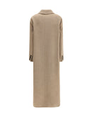 The Cashmere Drap Coat by Max Mara is a long double-breasted design that draws inspiration from masculine tailoring while embracing an oversized silhouette. Crafted from pure cashmere double drap with a soft, luxurious texture, it features a wide peak lapel and dropped shoulders with buttoned cuffs. The front closes with buttons and is finished with welt pockets and applied flaps, blending function and refinement. Semi-lined, it embodies effortless elegance and the timeless spirit of Max Mara’s outerwear.