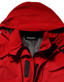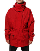 Dolce & Gabbana Red Nylon Hooded Men Full Zip Parka Jacket