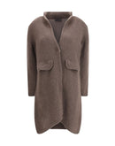 The semi-long Sweater by Ella is a warm and refined piece, featuring an elegant shawl collar and a front hook-and-eye closure. Designed with long sleeves and two front patch pockets, it combines practicality and comfort, making it ideal for a casual yet polished look.