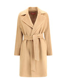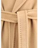 The Scire coat by Max Mara Studio is an elegant take on the timeless wrap silhouette. Crafted from luxurious pure wool beaver, it features a straight, fluid line that enhances the feminine shape. The design includes a classic notched lapel, long kimono sleeves, and a matching belt to cinch the waist. Side welt pockets and refined hand-stitched detailing highlight its exquisite craftsmanship. A sophisticated and timeless coat, perfect for facing the colder months with effortless elegance.