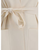 Spruce long Vest by Max Mara Studio features two welt patch pockets on the front for a functional and refined touch. Complete with a knotted and removable sash on the front, which allows you to define the silhouette and customize the look. A versatile and modern garment, ideal for adding elegance to any outfit.