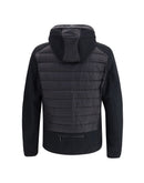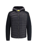 The Nolan hybrid Down Jacket by Parajumpers features an adjustable drawstring hood and front closure with a double-slider zipper. It has three front pockets, a back zipper pocket and two inside pockets with Velcro closure. Equipped with underarm ventilation, it features Lycra trim on the hood, pockets, hem and cuffs. The Parajumpers patch on the sleeve and the iconic yellow tape at the neck closure complete the design.