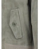 The Suede Jacket by Salvatore Santoro is a timeless piece, featuring a sophisticated design and refined details. The high collar with button closure adds a touch of elegance, while the front closure with double slider zip provides practicality and a modern look. On the front, two welt pockets with flap and button offer functionality and style. The ribbed cuffs and the hem also ribbed complete the look, giving a sober and well-defined effect.